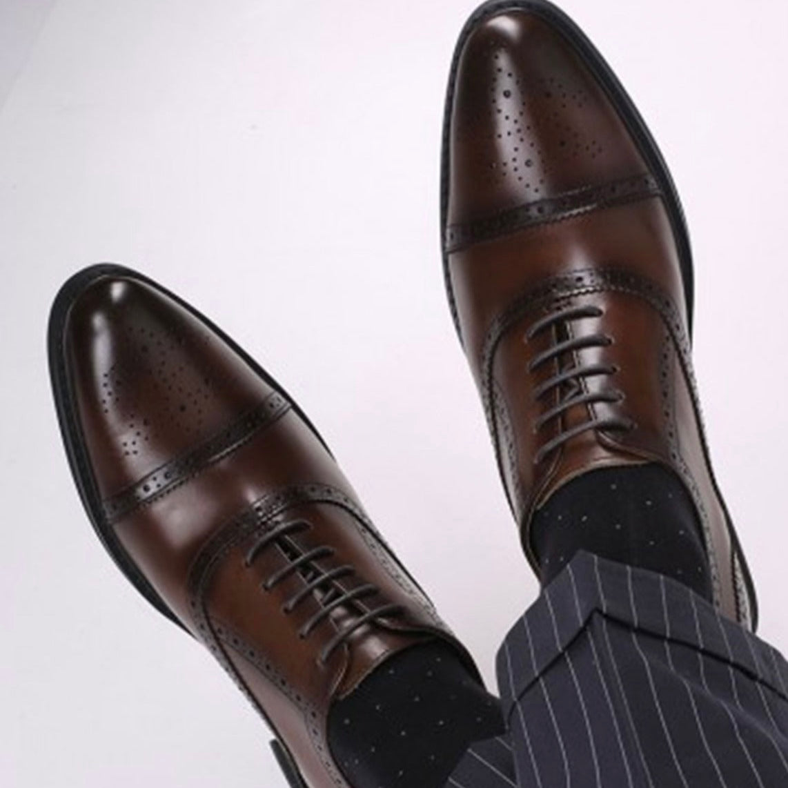 Suma elegancia y presencia: gana 8 cm de altura con este clásico de cuero formal.